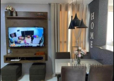 Com 49m², o apartamento possui 2 dormitórios com guarda roupas embutidos, 1 sala de estar, 1 banheiro com armário embutido e cozinha agregada com a lavanderia.