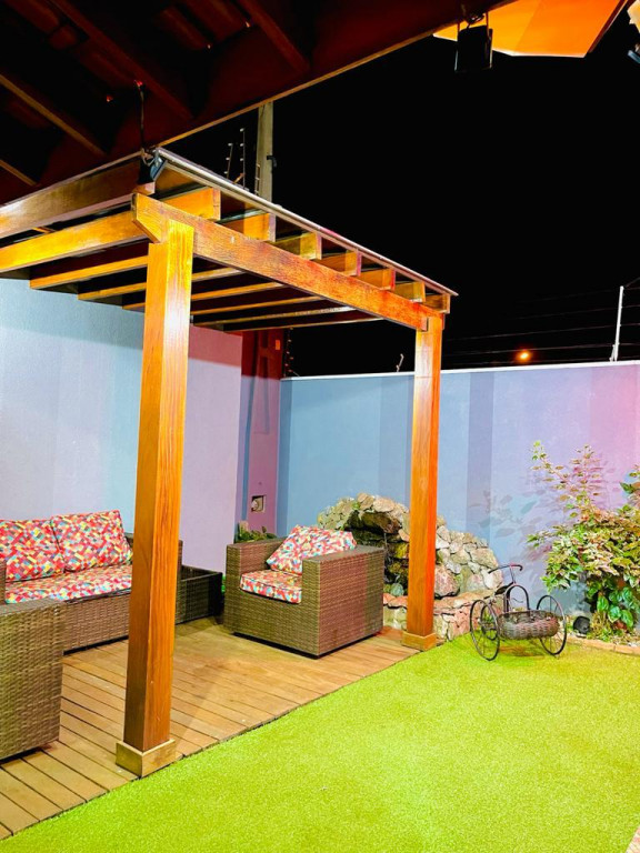 Contém 2 dormitórios sendo uma suite com closet e hidromassagem, cozinha completa em armários , sala de jantar , sala de tv, espaço gourmet, pergolado no quintal, garagem coberta para 2 carros.