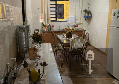 05 dormitórios sendo uma suíte, 03 cozinha,03 sala, 3 banheiro social, 3 vagas de garagem, área de churrasco e quartinho de despensa .